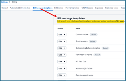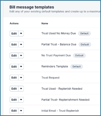 One of Clio’s best features (and something many platforms don’t offer) is the ability to create multiple bill message templates.